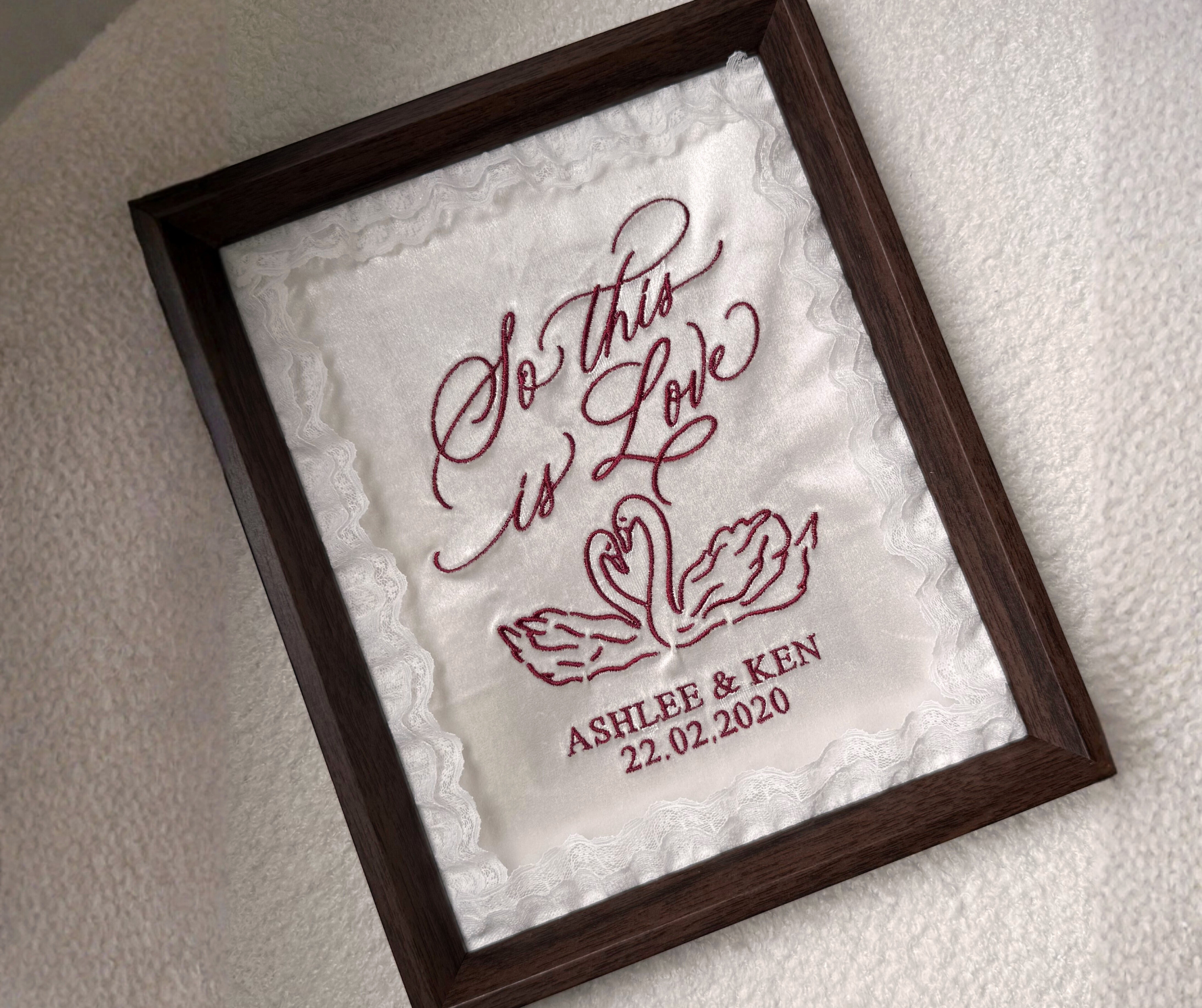 Words and memories preserved through calligraphy, embroidery and engraving — created for weddings, milestones and meaningful moments.