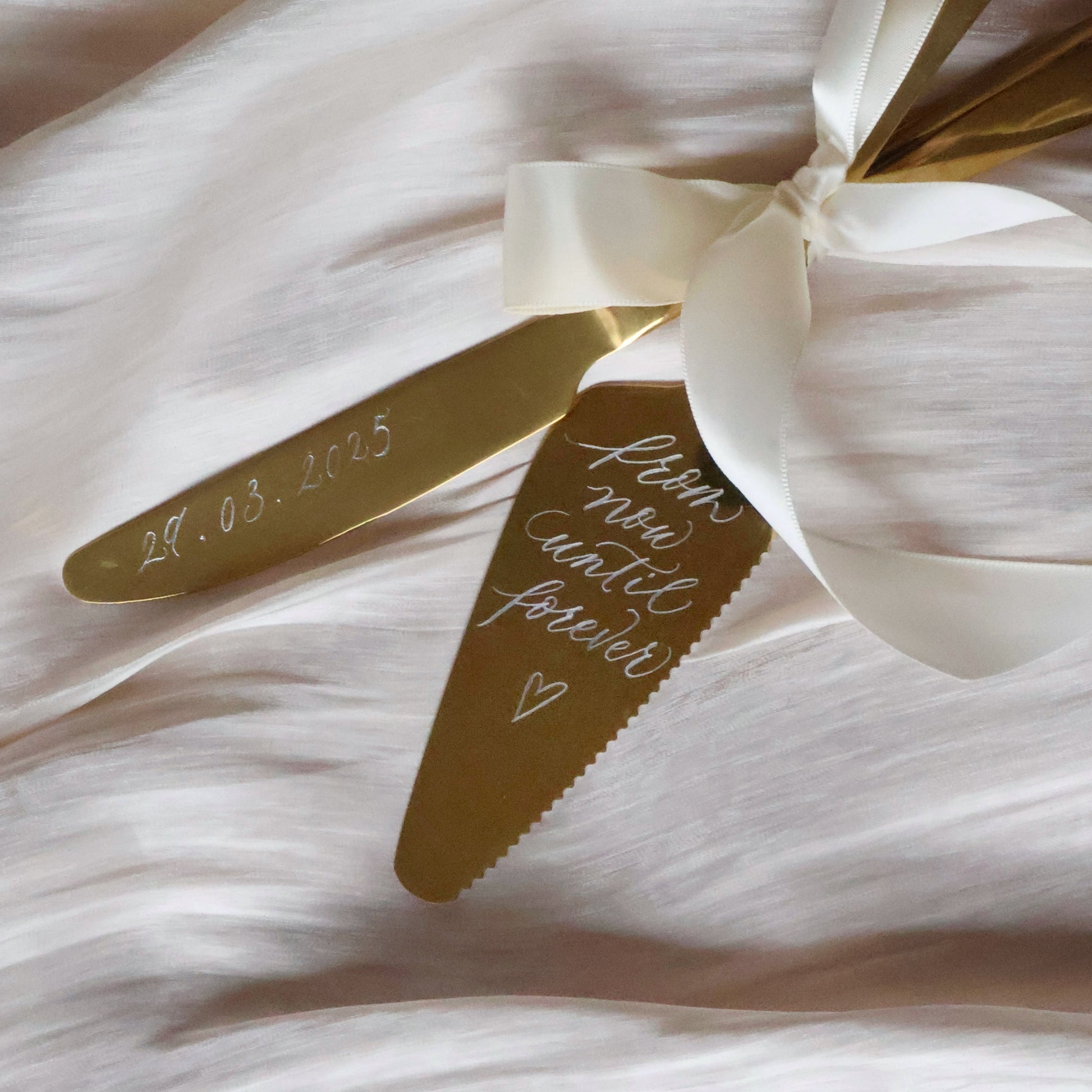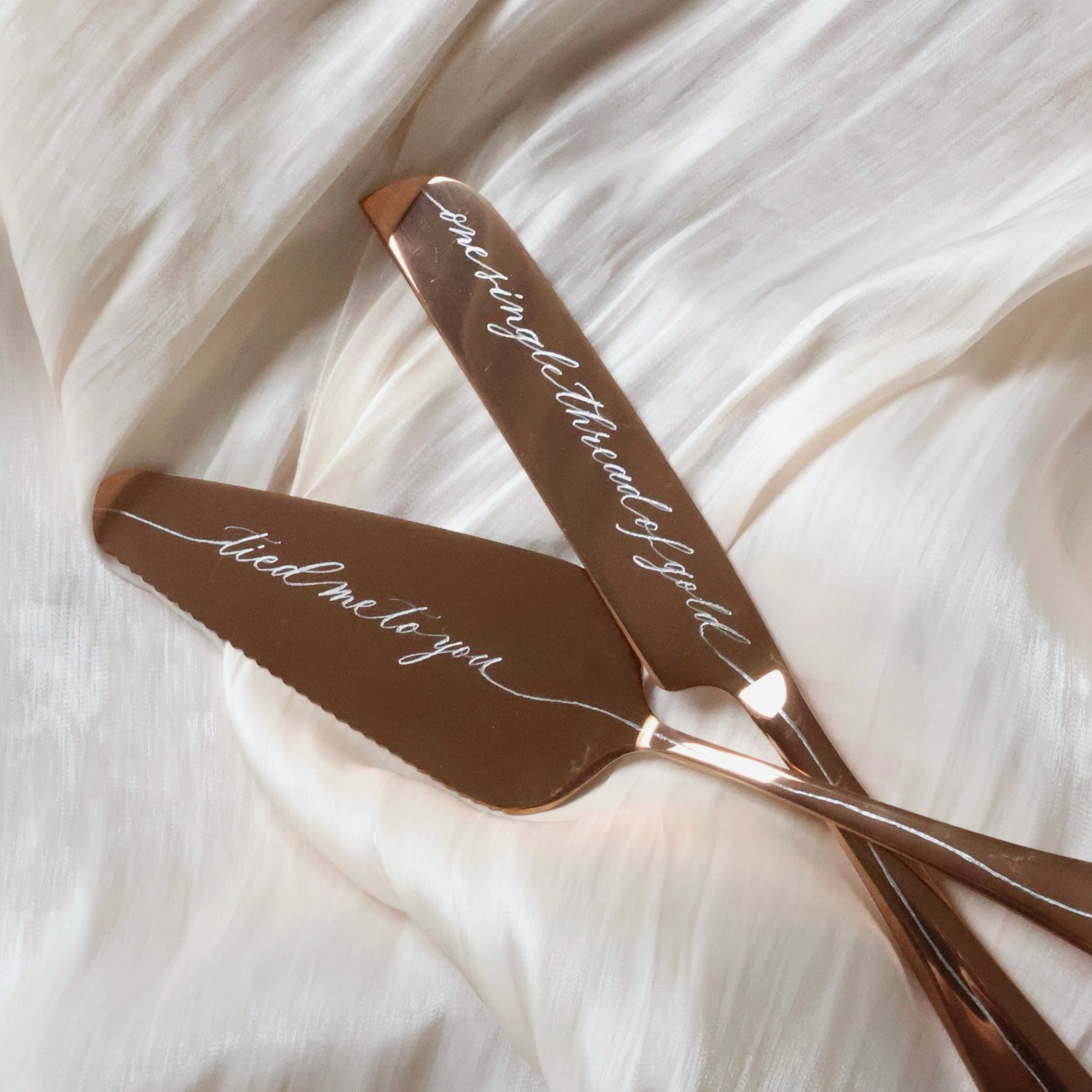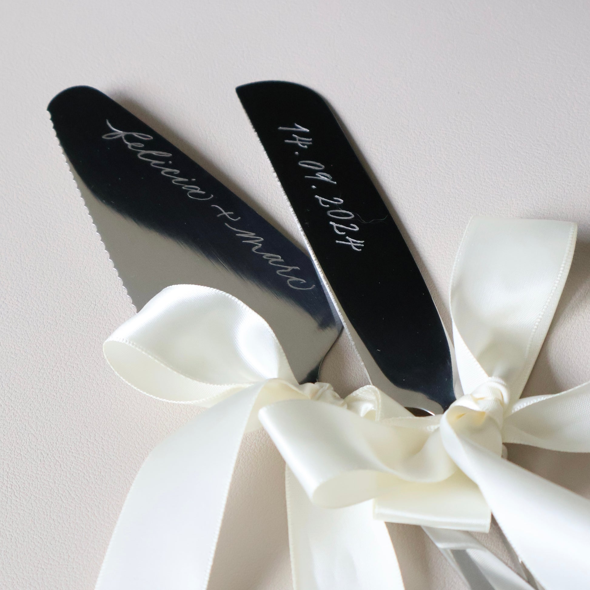 Celebrate your special occasion in style with this beautiful custom engraved cake cutting set. The perfect wedding gift idea for the bride and groom or anniversary present for the happy couple!